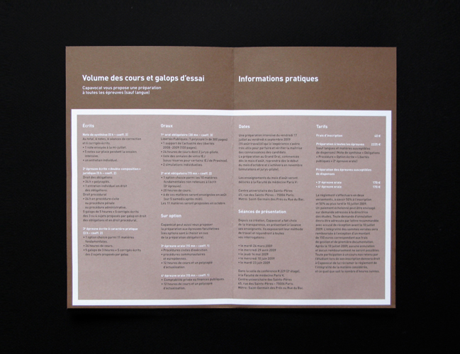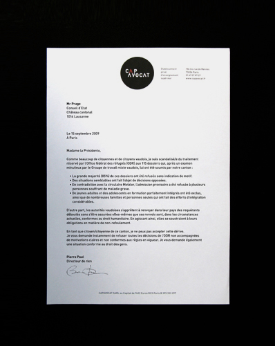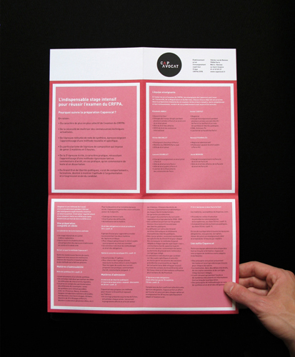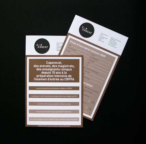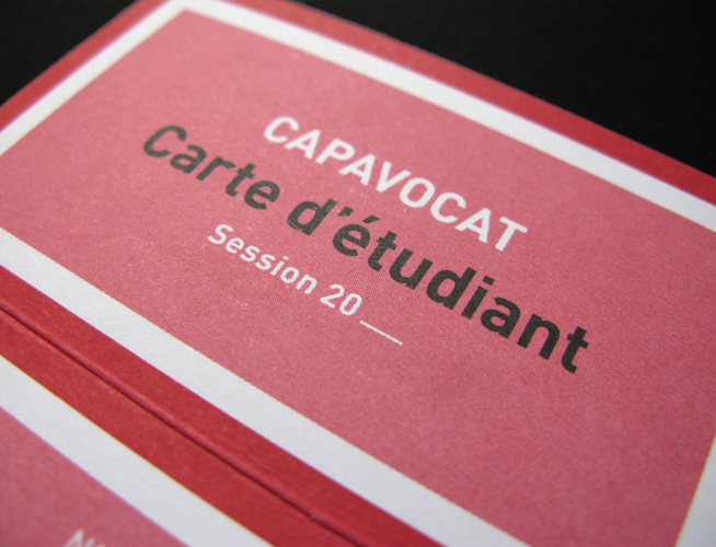 Capavocat est le leader de la préparation à l'école du barreau de Paris. Nous avons réalisé pour eux une refonte complète de leur charte graphique (logo, carte de visites, cartes d'étudiants, feuille d'examens, etc.) ainsi que des plaquettes de présentation et d'inscription.