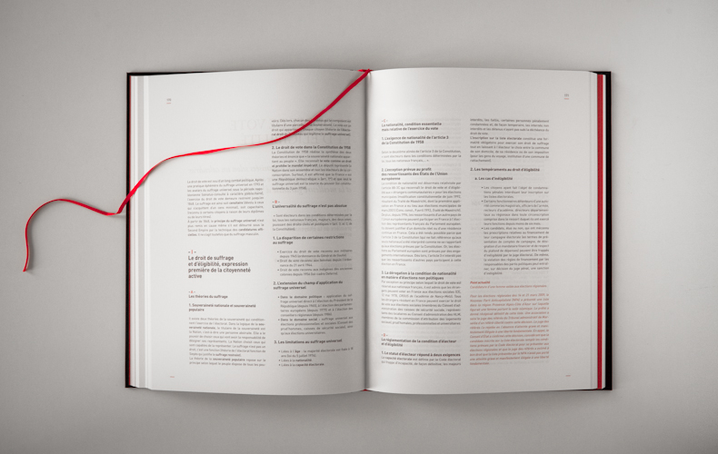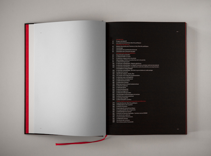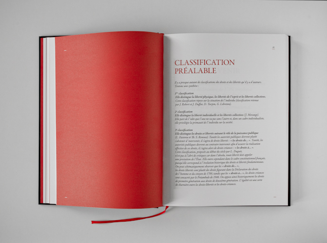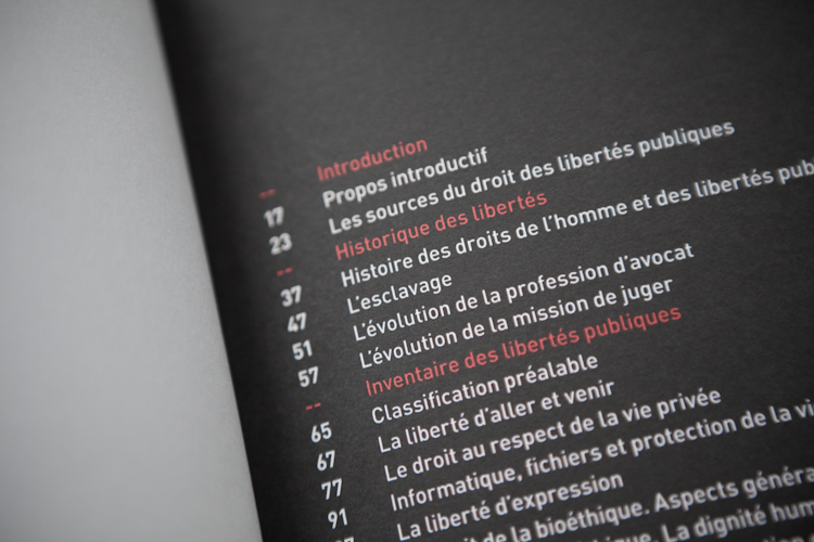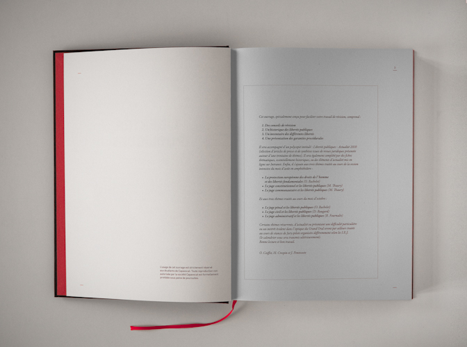 /Conception and execution of a manual for Capavocat, dealing with all the laws of public liberties and the juridic actuality of 2010. The goals have been to present the rich content as simple and clear as possible according to the visual identity.